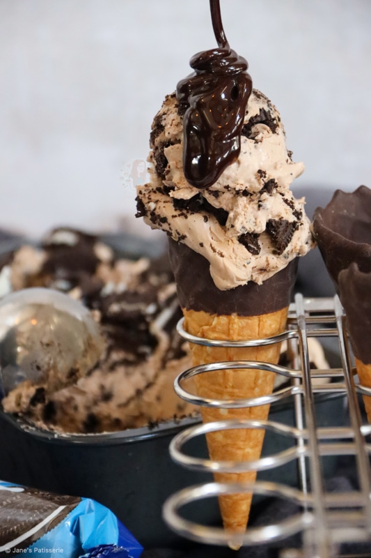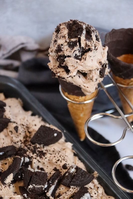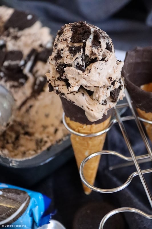 - I would often serve this ice-cream in a brandy snap bowl with a couple of chocolate wafer curls, or with an extra few Oreo's to scoop it up with - its completely up to you.