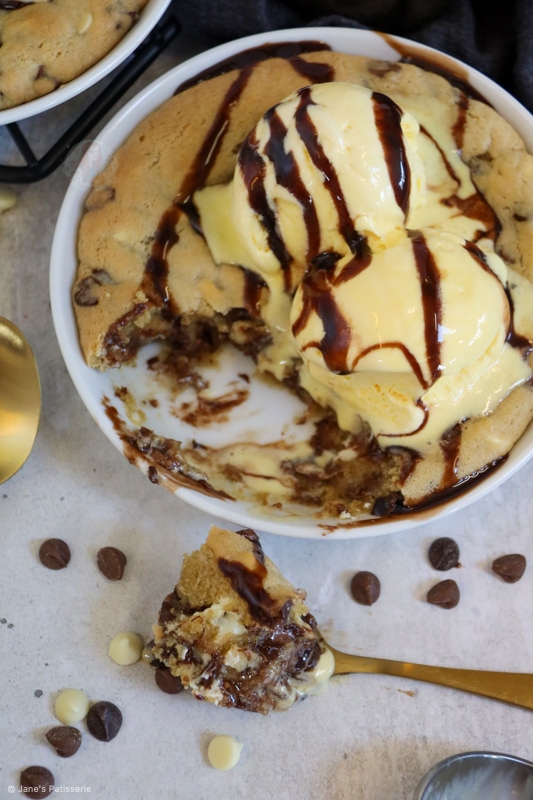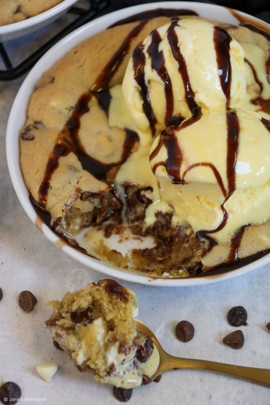 A delicious chocolatey recipe for two individual cookie dough desserts – just like the pizza hut one!