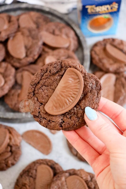 Delicious moist & crunchy cookies full to the brim with chunks of Terry’s chocolate orange – heavenly Terry’s chocolate orange cookies!