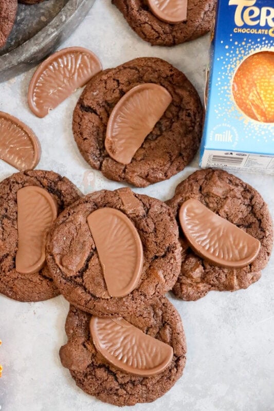 I can’t stop making chocolate orange themed bakes… genuinely, my chocolate orange layer cake, and my chocolate orange cupcakes are always well received, and every Christmas I have to make my no-bake chocolate orange cheesecake and everyone always adores it. However, I went to the supermarket recently and picked up a bag of Terry’s chocolate orange cookies to buy, I realised I might as well bake them at home myself.