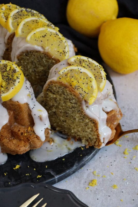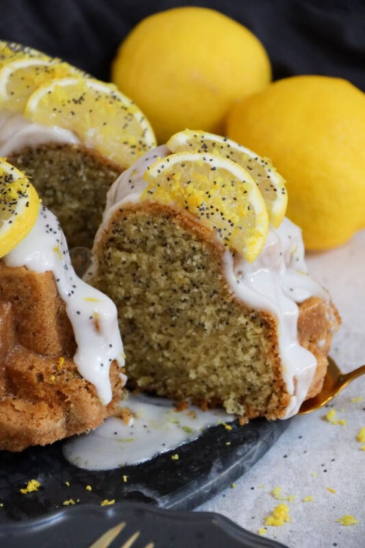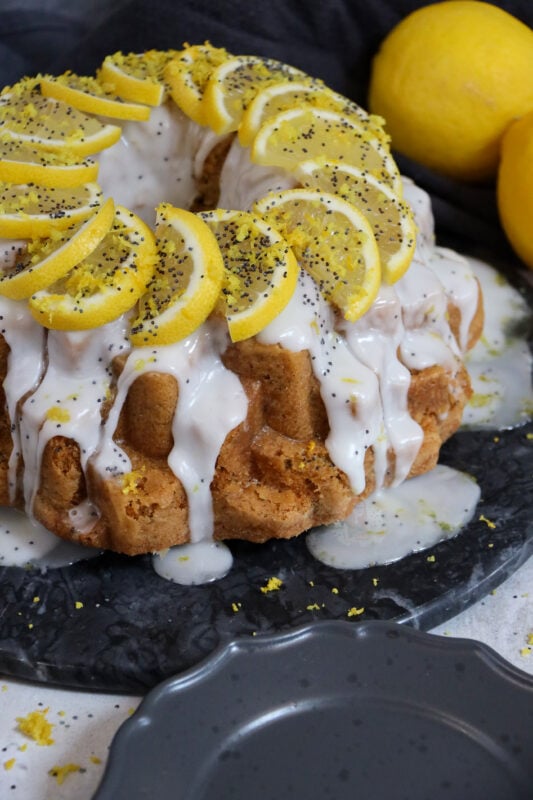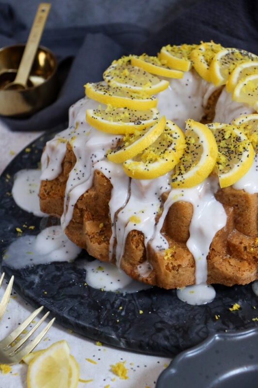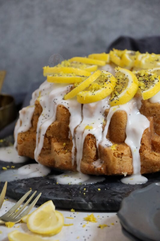 Look at the yumminess that is this lemon and poppyseed bundt cake! Lemon and poppyseed is a delicious combination – lemon cake in general is delicious and light, yet poppyseed gives it an extra added flavour.