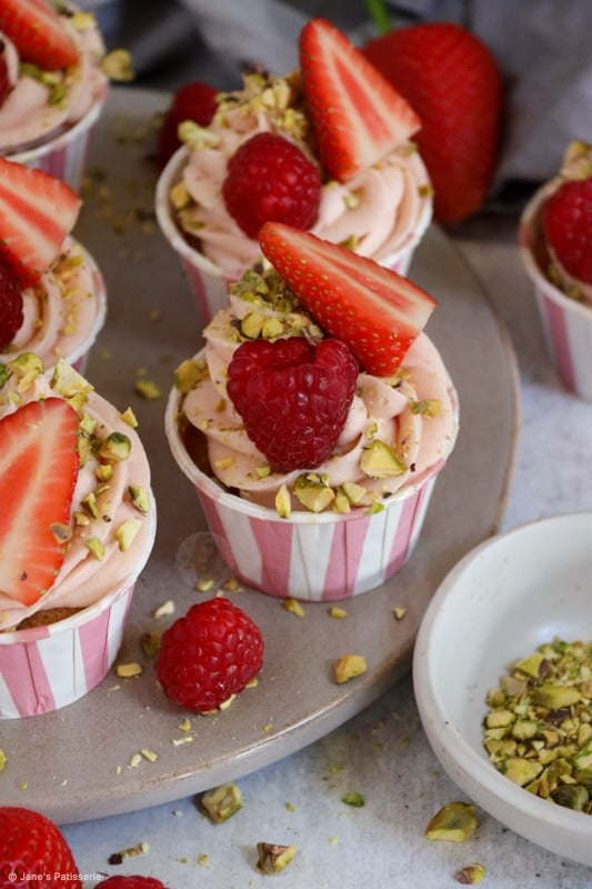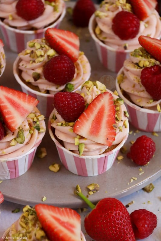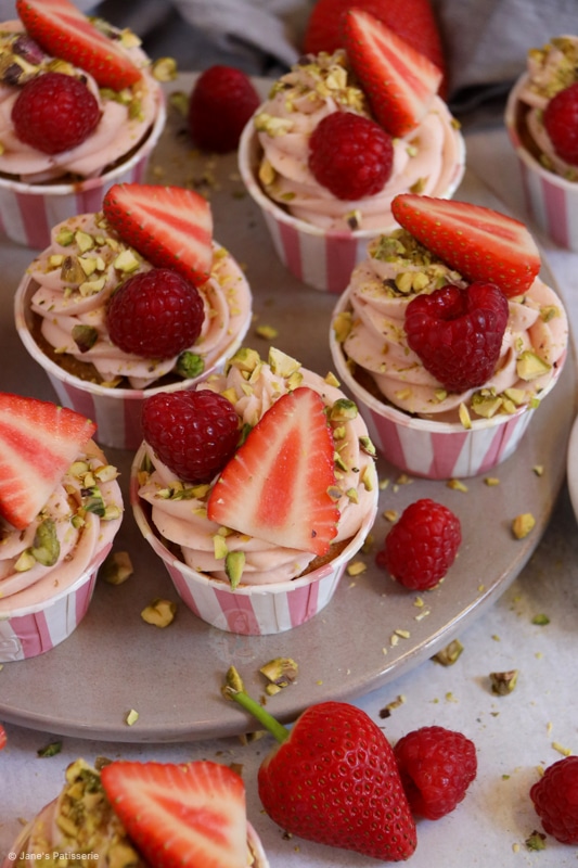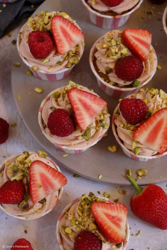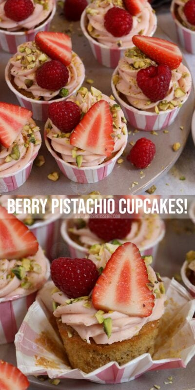 Delicious and fruity berry & pistachio cupcakes with a berry pistachio buttercream and more!