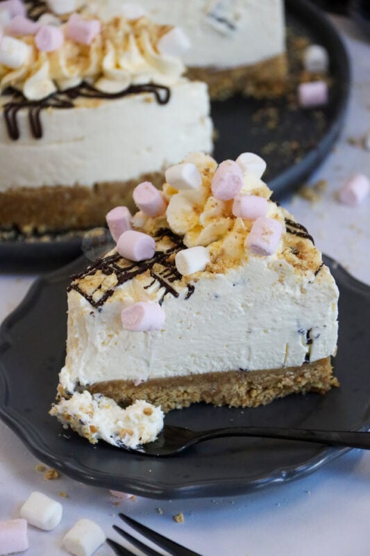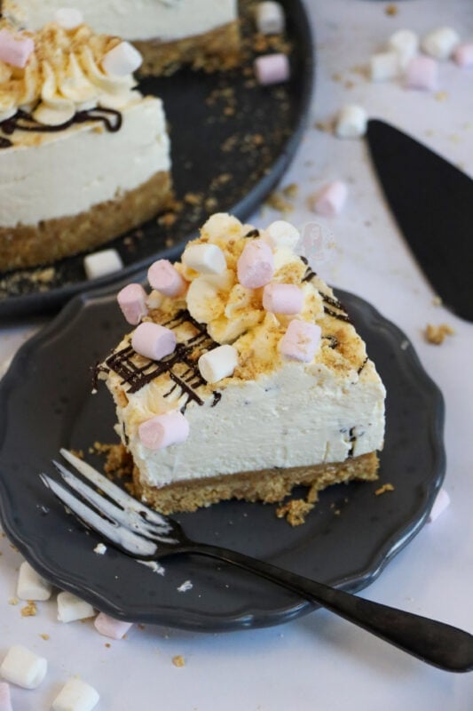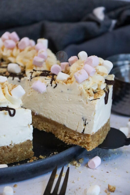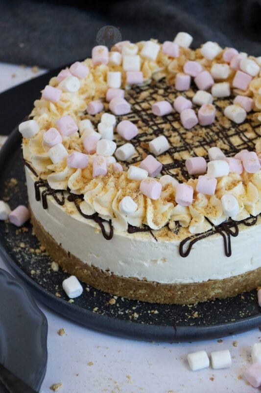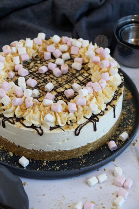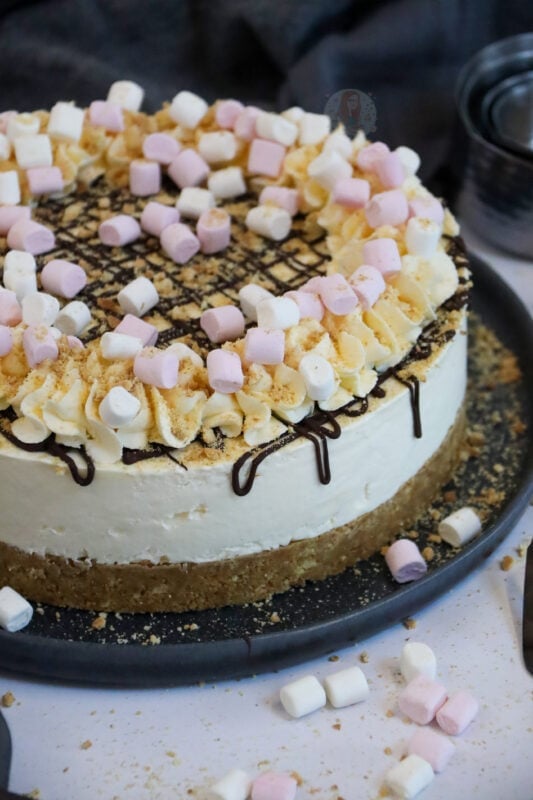 The mini toasted marshmallows on top of the cheesecake give it that lovely campfire taste, along with the insane amount of marshmallow goodness, and the delicious biscuity crunch – its always going to be a winner!
