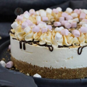 This has to be one of the most mouth watering cheesecakes I’ve ever seen. Especially when drizzled in all those marshmallows and chocolate!