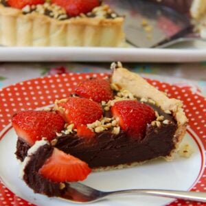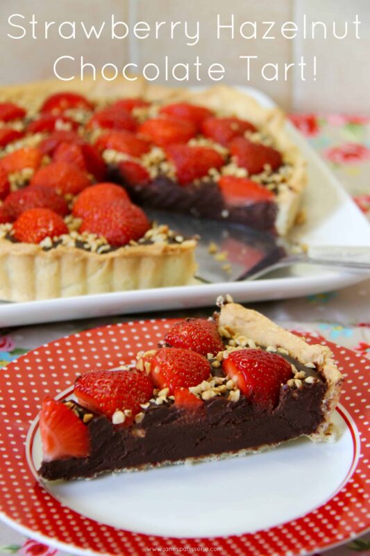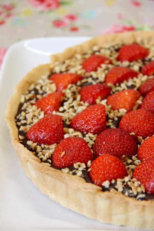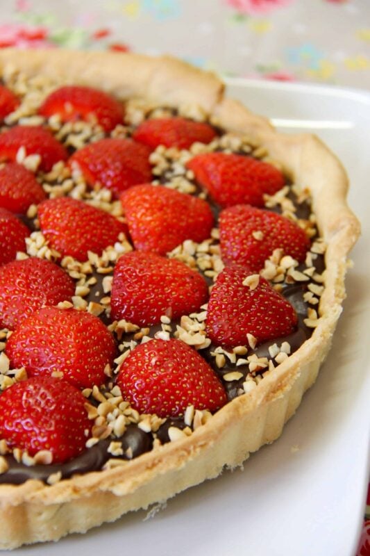 Fresh strawberries, chopped hazelnut, and a delicious chocolatey filling in a sweet shortcrust pastry case – DELICIOUS.