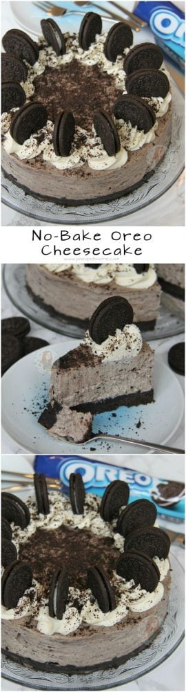 Super quick cheesecake recipe! If using a hand held mixer, beat the cream and icing sugar separately. Then fold in the cream cheese and Oreo. Never splits this way.