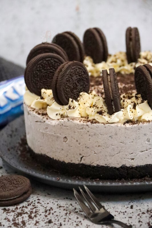 - Then, decorate with the whole Oreos, and some Oreo crumbs! Enjoy!
