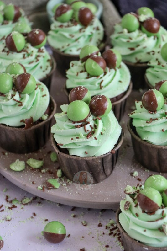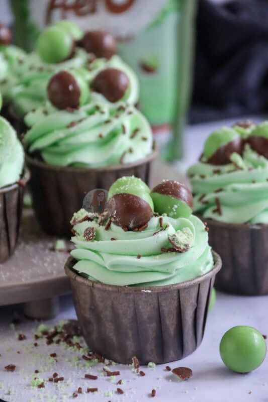 The chocolate chip sponge with the added peppermint essence is the perfect flavour combination, especially with the addition of dark chocolate chips too. It makes the cupcakes even more indulgent but also adds a lovely texture to the bake to marry with the flavour perfectly!