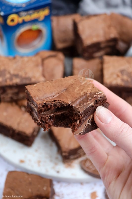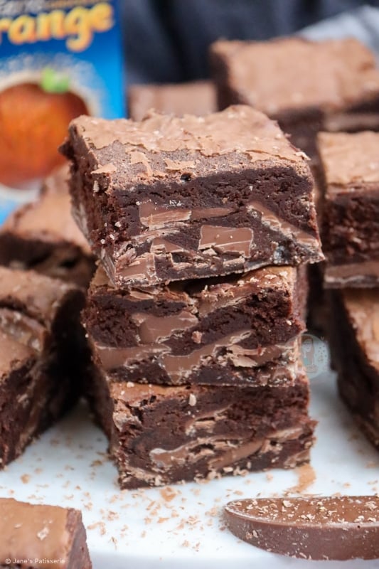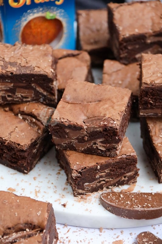 I live in the UK, which means we have easy access to a brand call Terry’s chocolate orange, and it’s just incredible. It has the perfect balance of the orange oil flavour with the milk chocolate, and works as a dream in these brownies.