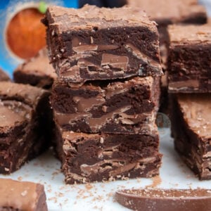 I have made this recipe many times now as it’s a personal favourite, and they have that ideal brownie texture. The dark chocolate base creates a better texture, more delicious flavour, and a more reliably fudgy finish to the bake.