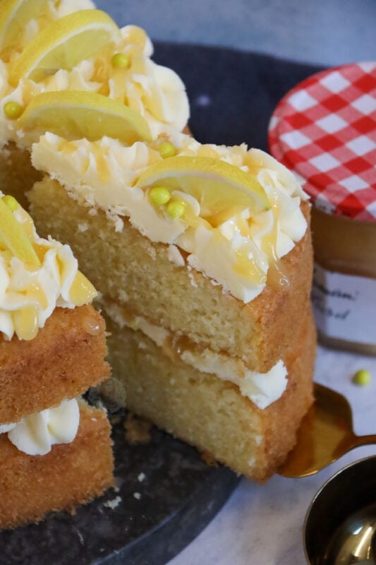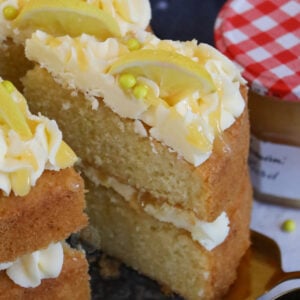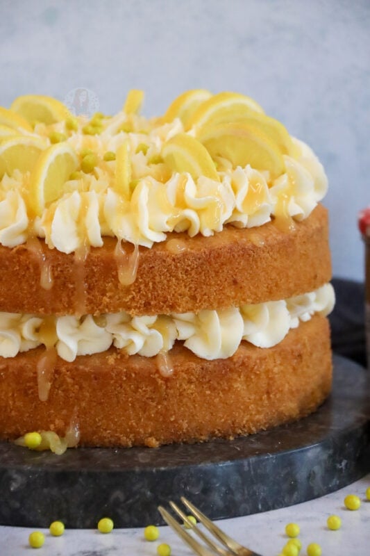 A delicious, light & lemony sponge filled with a dash of lemon curd and a luscious lemon buttercream! The perfect lemon celebration cake!