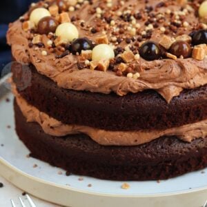 A moist chocolate fudge cake sponge, topped & filled with THE BEST chocolate frosting you will ever make!