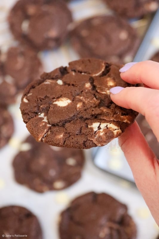 You can find a recipe for gluten free chocolate chip cookies here if you would prefer those over double chocolate, or if gluten free is for you but cookies aren’t – check out my recipes for gluten free vanilla cupcakes and gluten free carrot cake – delicious!