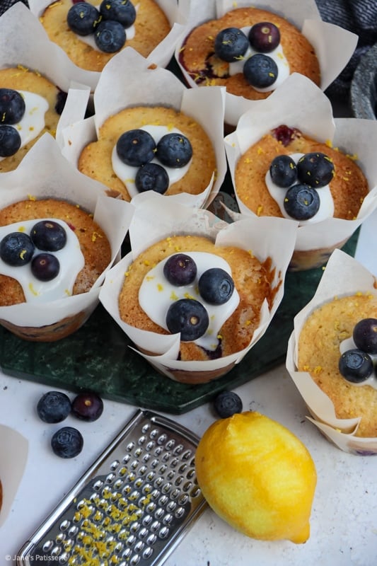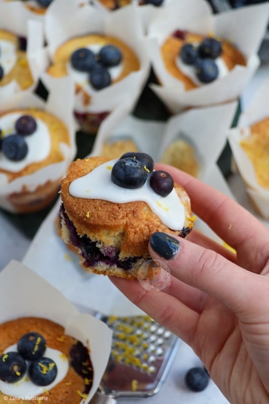 For these muffins I use unsalted butter, eggs, caster sugar and self-raising flour, salt and milk. You then fold in your lemon and blueberries and bake – it really is that easy. I use fresh blueberries with this bake as I believe not only do they work best but you cant beat the taste of fresh, juicy blueberries.