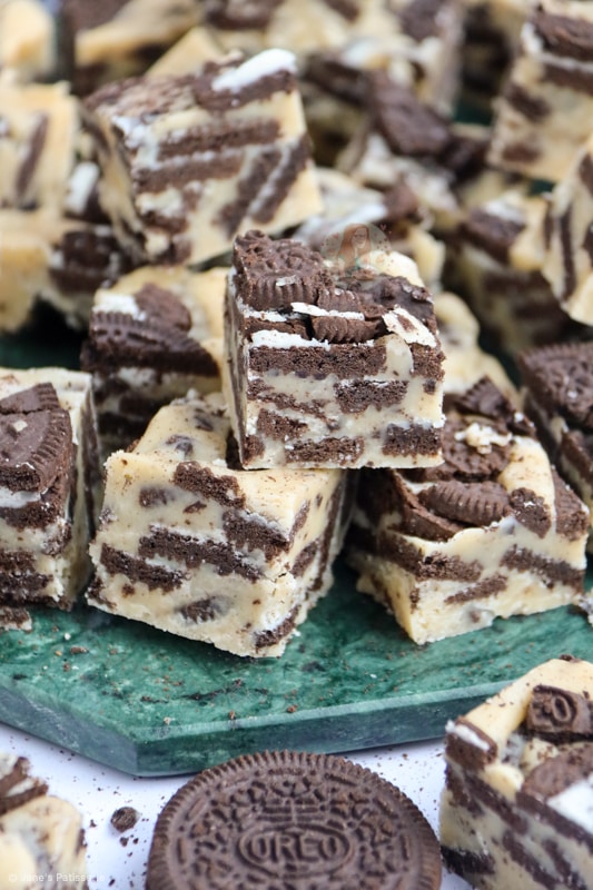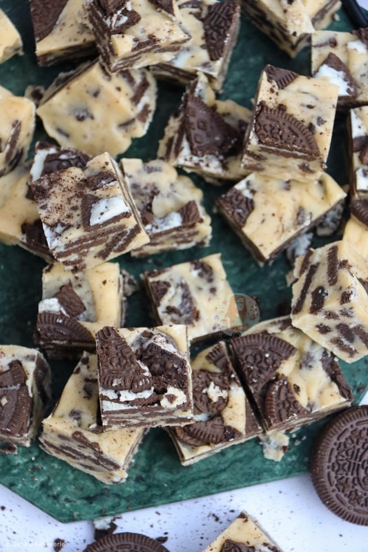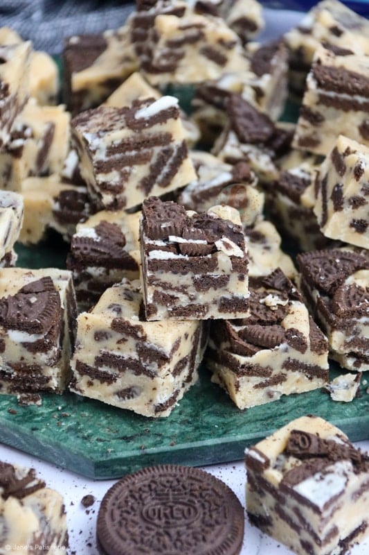 As always, this recipe is super adaptable to suit your taste! You can use another biscuit if you prefer but Oreos are by far my favourite. I think the chocolatey biscuit with the creme filling suits the plain fudge perfectly!