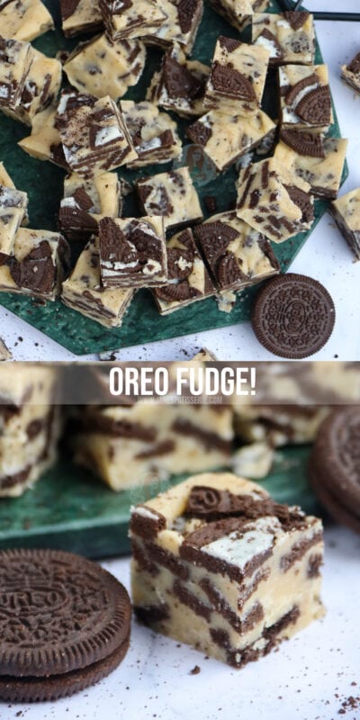 Creamy homemade Oreo fudge full to the brim with crushed Oreos! Perfect for a homemade treat, or a little gift!