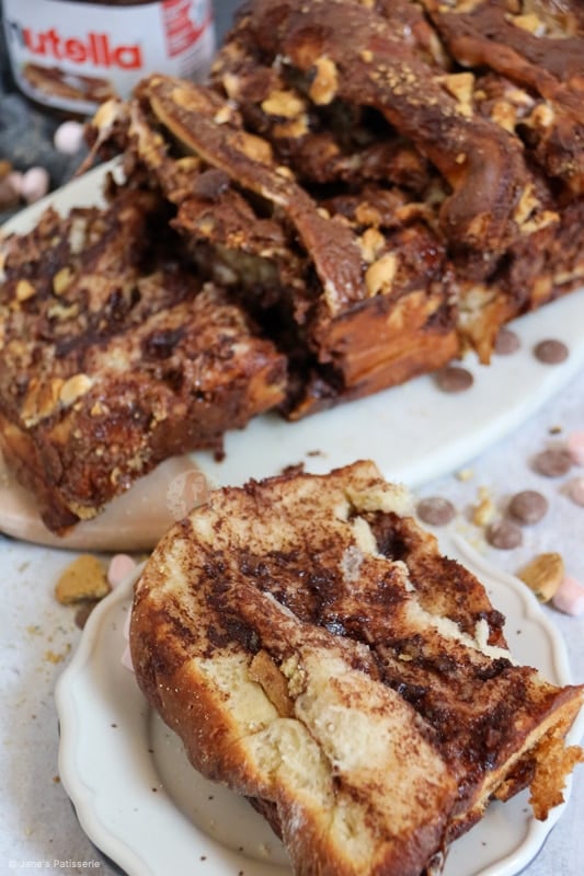 A sweet bread dough, spread with Nutella, packed full of mini marshmallows, biscuit pieces, and chocolate chips – Heaven!