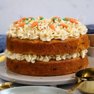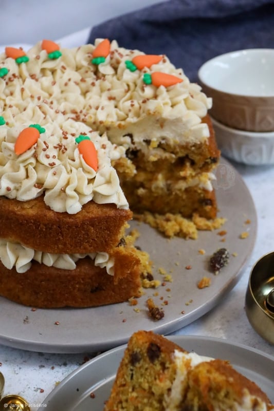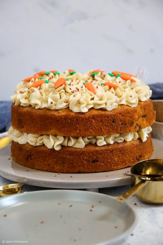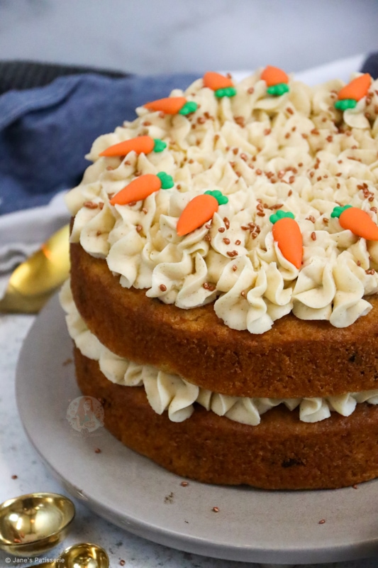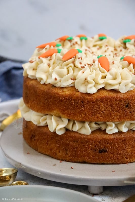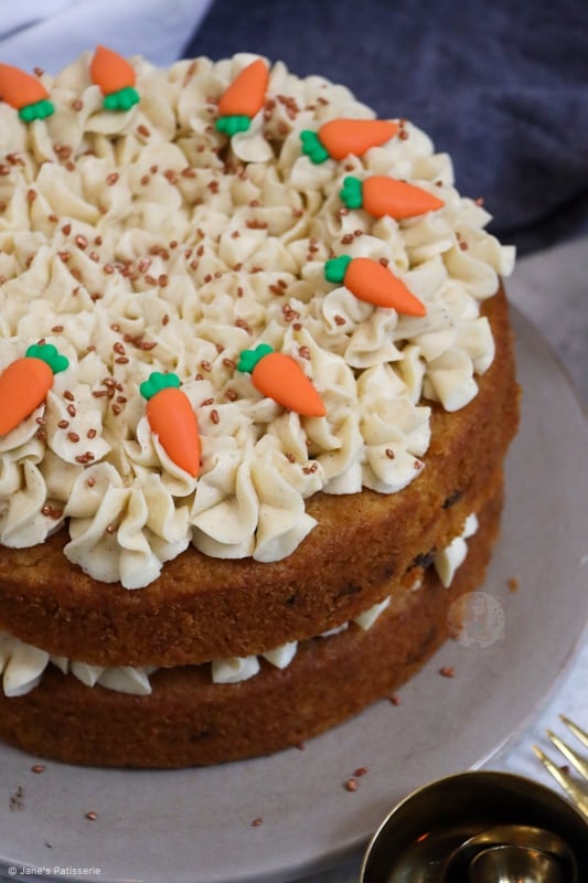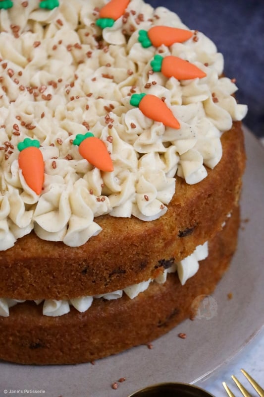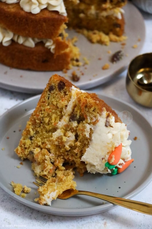 The carrot in the cake brings out so much moisture and deliciousness that you can’t tell the difference between this cake and a regular carrot cake. Genuinely, carrot cake is my favourite cake that is out there as it’s hard to get it wrong, and I just adore it so much for that.