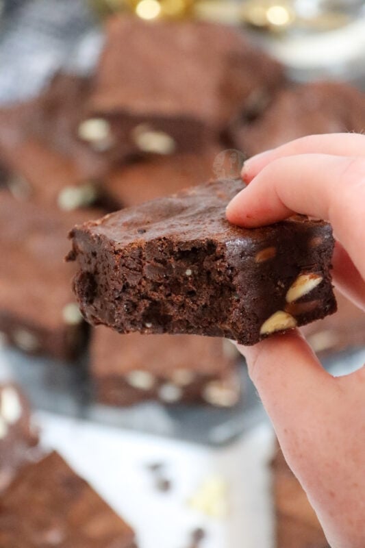These brownies are made using gluten free flour – a classic GF alternative, and these are exceptional. I often bake these for my gluten intolerant friend, and now I bake them near enough weekly just because I love them that much!