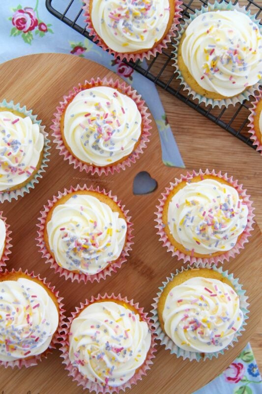 - Decorate your cupcakes how you like (I use lots and lots of sprinkles!) Enjoy!