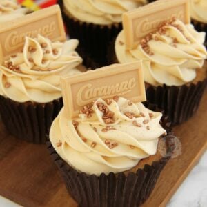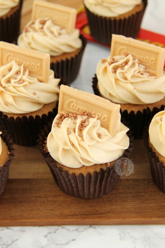 Caramel hinted cupcake sponges topped with a luscious Caramac Frosting – perfect Caramac Cupcakes for any Caramel & Caramac lover!