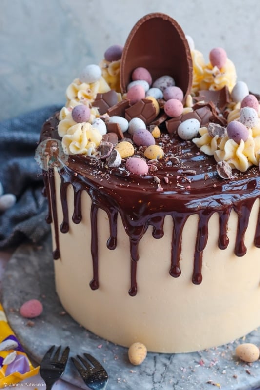 This may be partly my fault I won’t lie, as I am also obsessed – I much prefer these sort of cakes in comparison to regular fondant covered cakes as I love chocolate and frostings and all things delicious. You can have so much fun with the decoration on a drip cake, especially when its at easter and you can make it into a mini egg cake.
