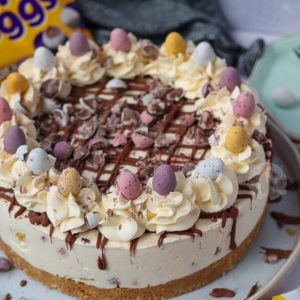 I just can’t cope with how in love with this I am. What could be better than an easter themed cheesecake recipe?! After the success of my Easter Nest Cupcakes last year, and the downright overwhelming success of my Mini Egg Drip Cake the other day, I know you will LOVE this recipe.