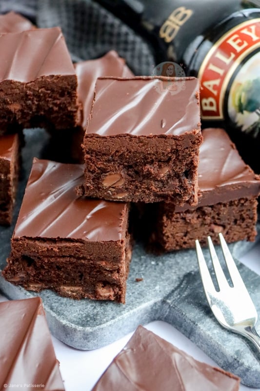 Chocolate Chip Baileys Brownies topped with a Chocolate Baileys Ganache – Perfect Chocolate Bake for a Baileys lover!