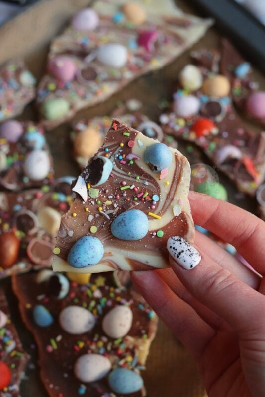 My mini egg NYC cookies are by far my most popular easter recipe, along with my mini egg cheesecake and Creme Egg loaf cake – but this bark? I can’t keep up with you guys making it.