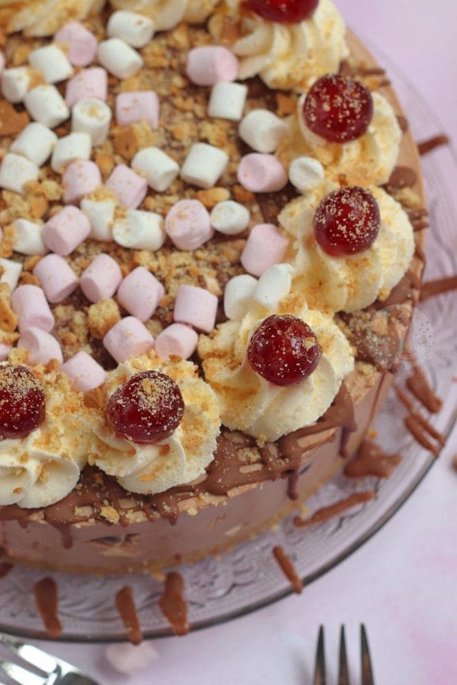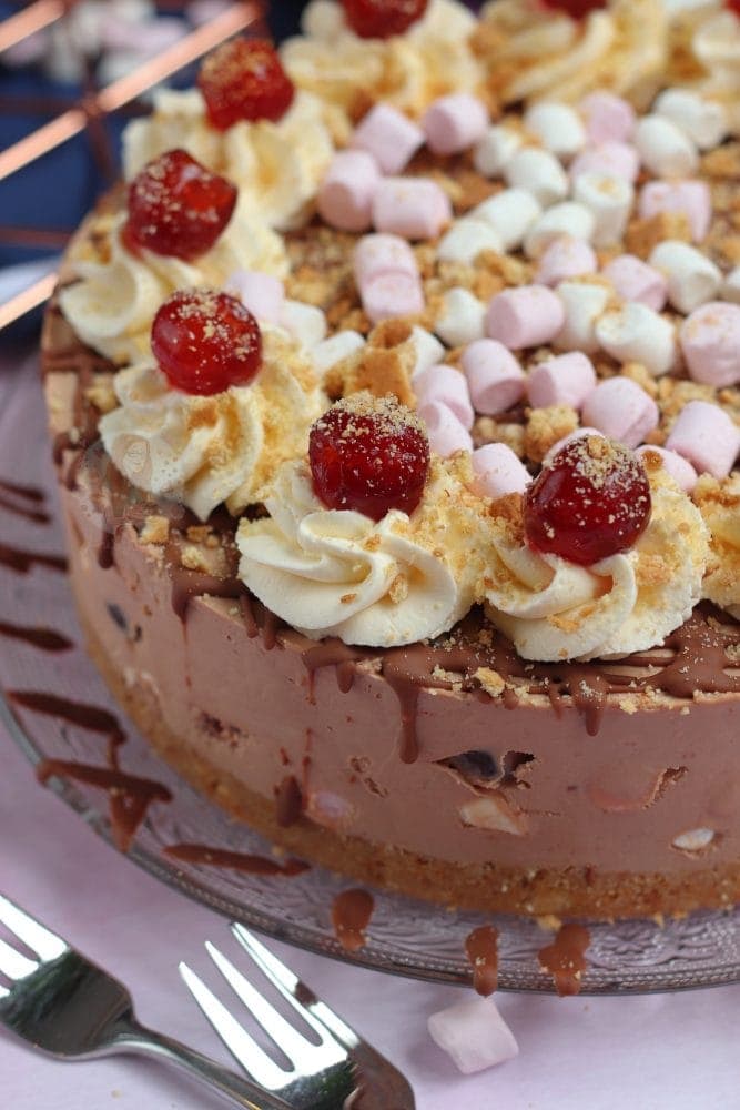 - The Marshmallows and Glacé Cherries are optional inside the cheesecake, but it makes it as Rocky Road-like as possible!