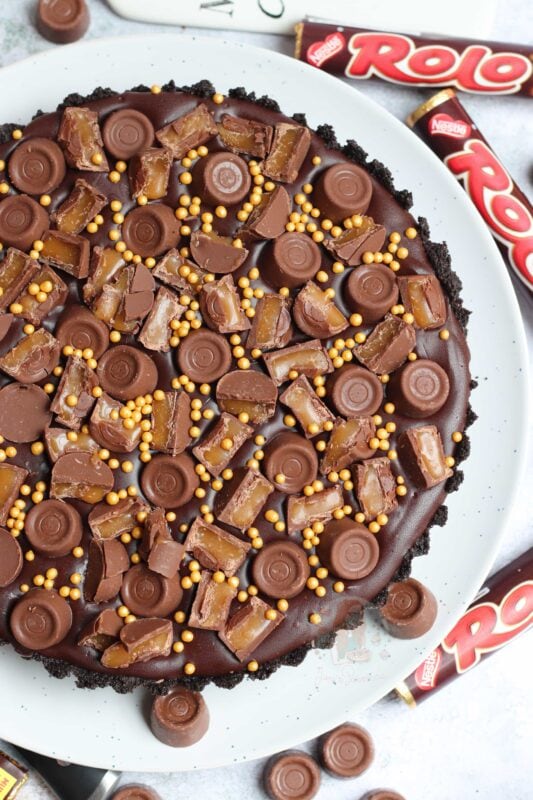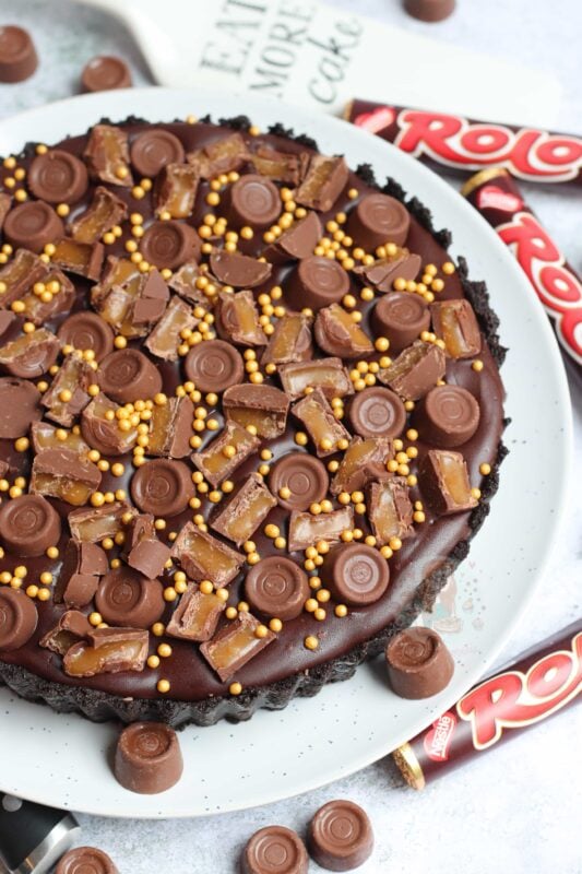 A delicious no-bake rolo tart with an oreo base and caramel filling that will be the perfect showstopper for any occasion!