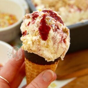 Boy does THIS look yummy. I love that you don’t need an ice cream machine to make this–because I don’t have one lol