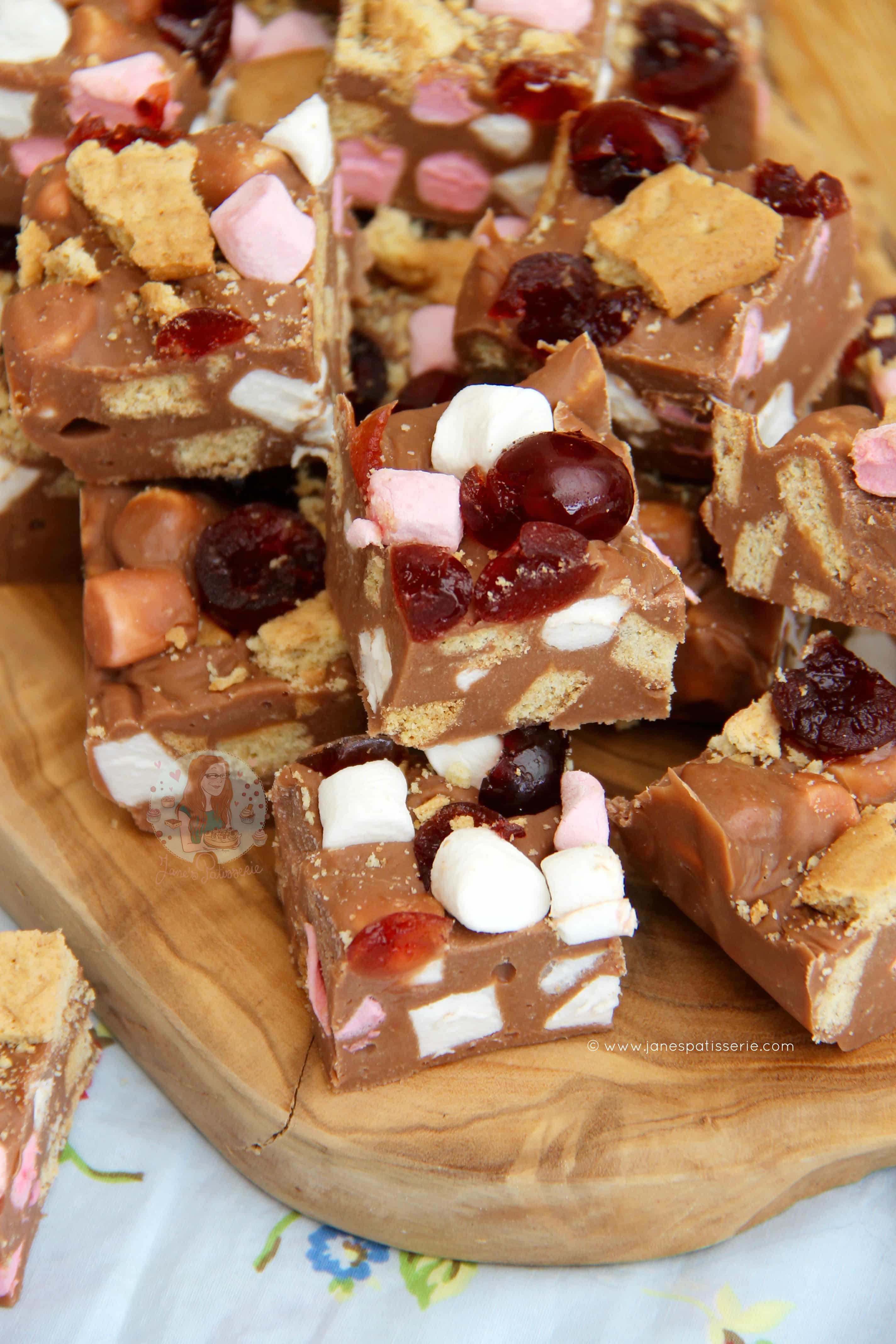 My Rocky Road recipe features all things delicious such as marshmallows, biscuits and chocolate and my No-Bake Rocky Road Cheesecake even has glacé cherries so I thought I would mash up all my favourite rocky road bits and add them to my fudge recipe!