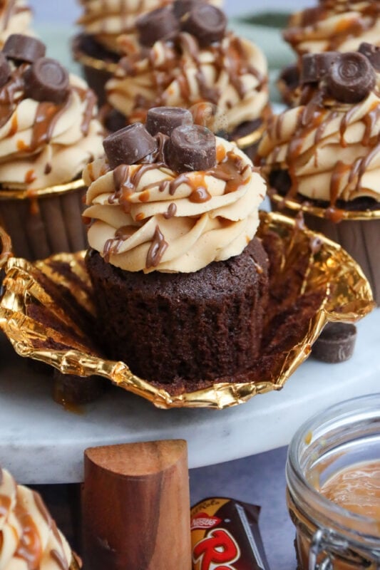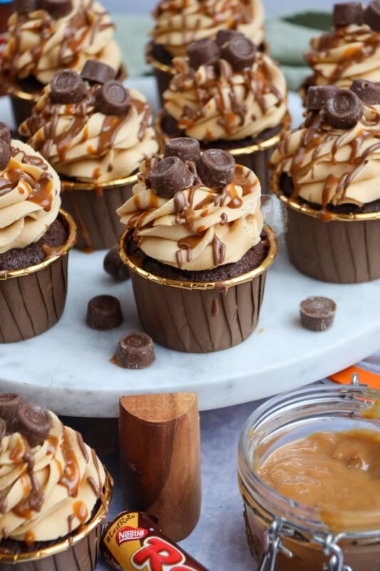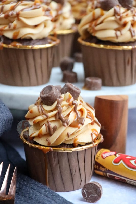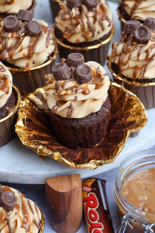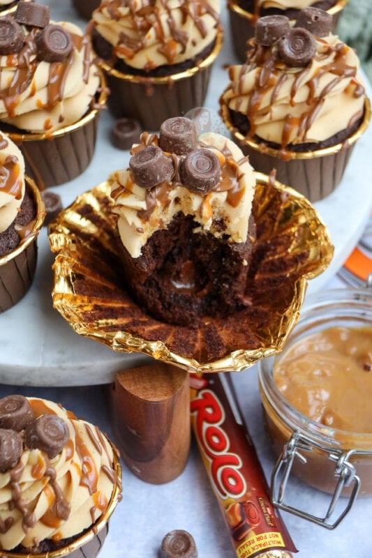 - If you want an extra chocolatey fix, you can add in 100g of chocolate chips to the cupcake mix, but I like using just the Rolos!