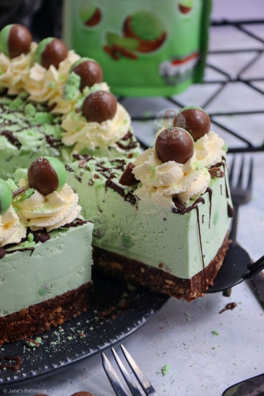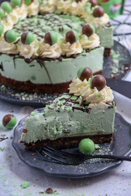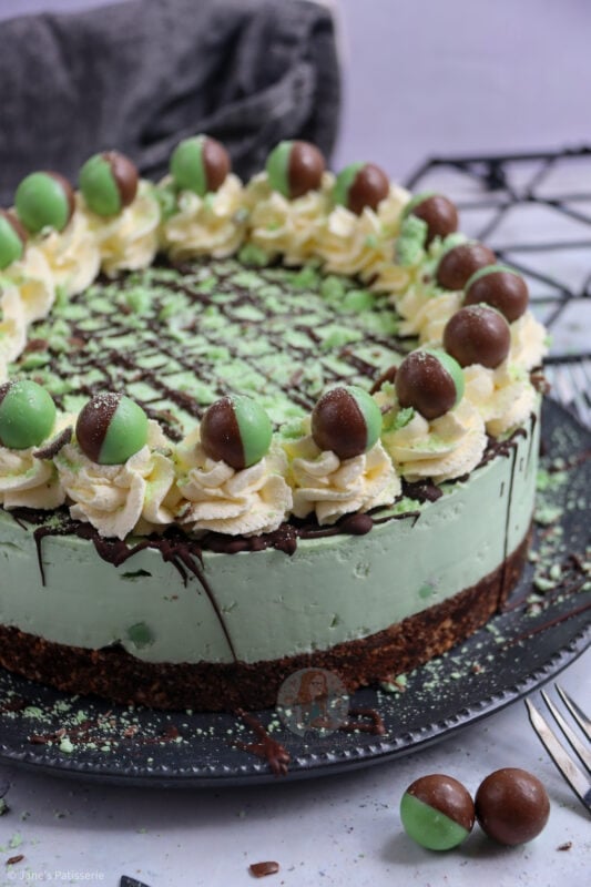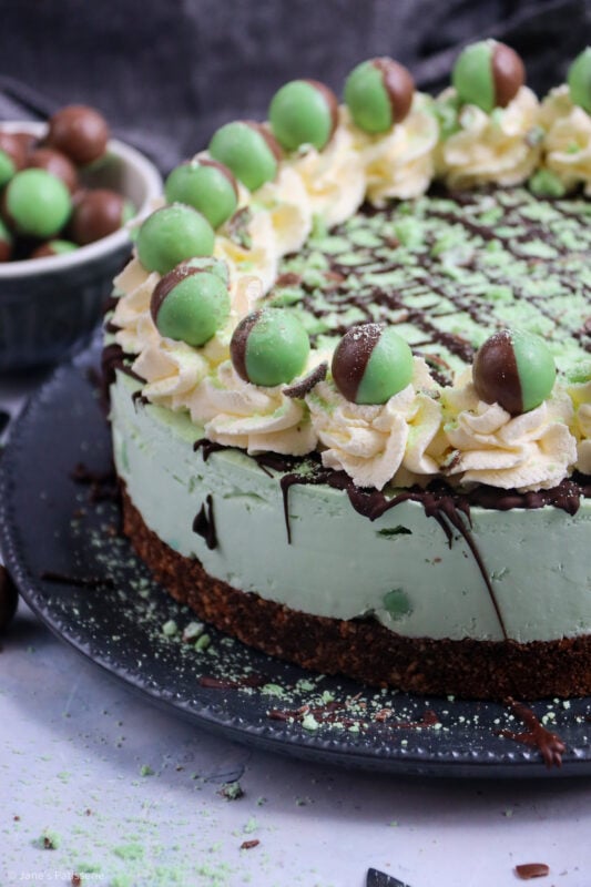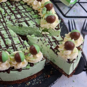 I decided to update this recipe slightly to improve it. After some comments of the mixture tasting a bit odd, I decided to change the cream cheese to mascarpone. It can sometimes taste odd as some mint extracts are different, and don’t mix well with the tartness of Philadelphia. I also switched the base to a cocoa powder and digestive base as its so yummy! The original recipe is in the comments of the recipe card below if you did want to make it!