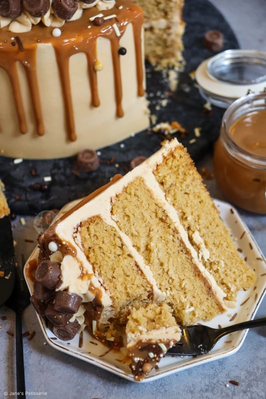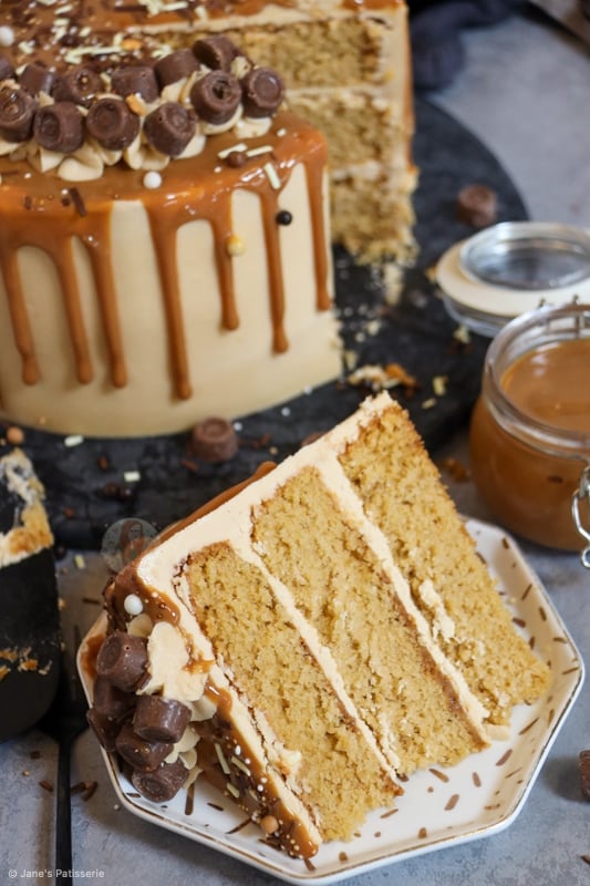 I used the same cake recipe that I have used a few times now, such as in my Caramac Cake, and my Biscoff Cake. Using the light brown sugar in the cake sponge gives it a natural caramel flavour, and also keeps the sponge so moist and delicious.