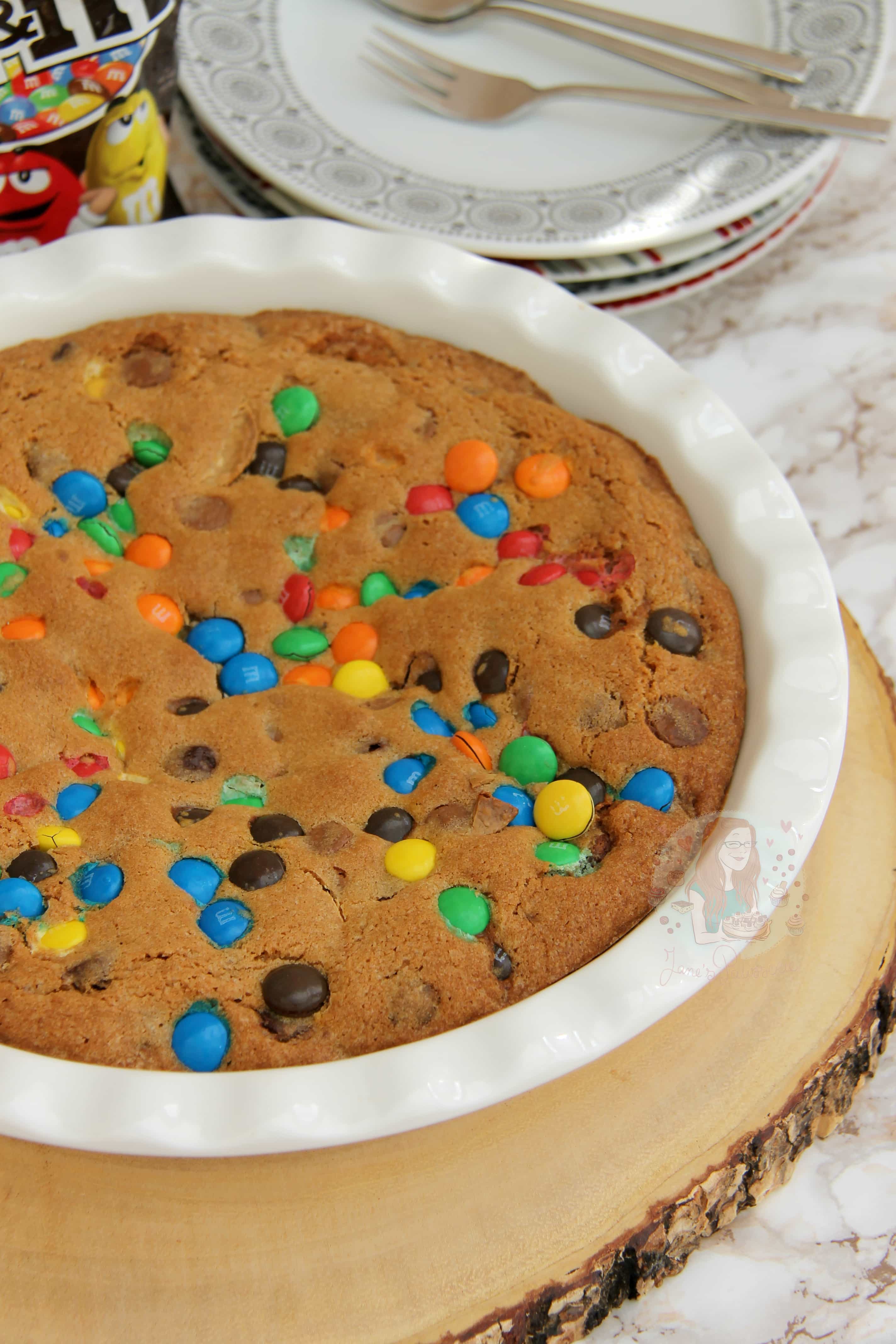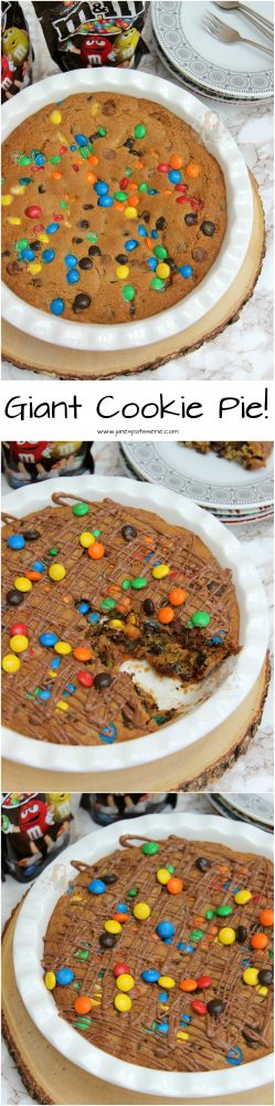 After the success of my Triple Chocolate Cookie Cake recipe that I posted the other day, along with my M&M Cookie Bars, and Rolo Cookie Bars I KNEW I had to post this one. I have made this recipe so many times that I can’t cope, and it never stops being delicious. I adore it. Something about a Giant Cookie, but in Pie form is just infinitely better! Obviously, its not really a pie… but we can ignore that part.