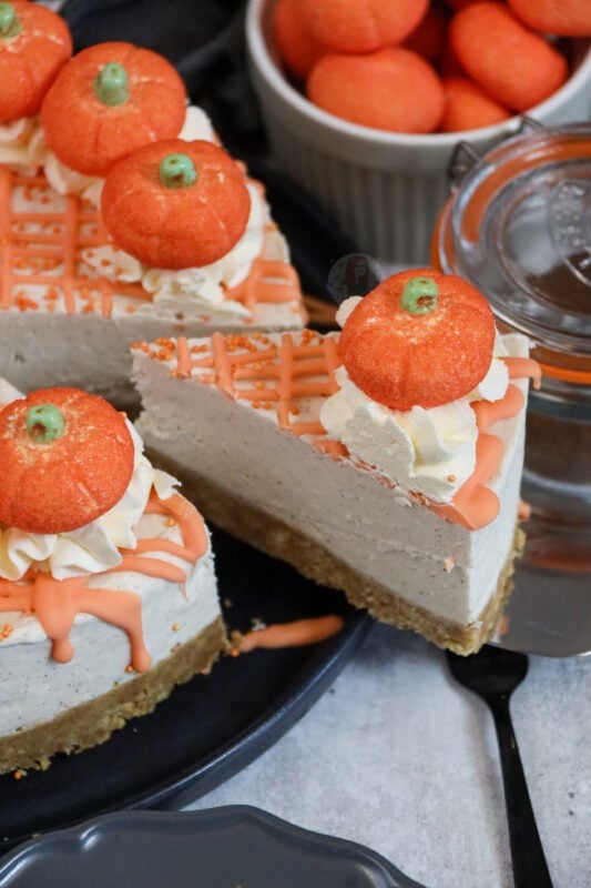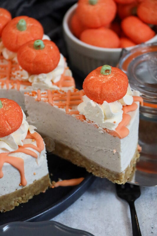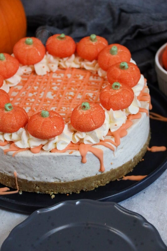You can make a pumpkin spice cheesecake all year round – there will be no judgement! I eat ice cream all year round and no one will ever stop me! However if you were more looking for Halloween specific bakes, then you are best to check out my Halloween cookie bars, drip cake or even my bloody drip cake – all were too much fun!