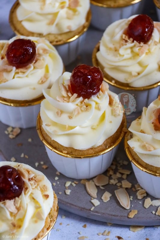 The cupcakes are super simple, with just an easy almond based addition to create a nice almond base flavour. The sponge essentially replaces the idea of the frangipane.