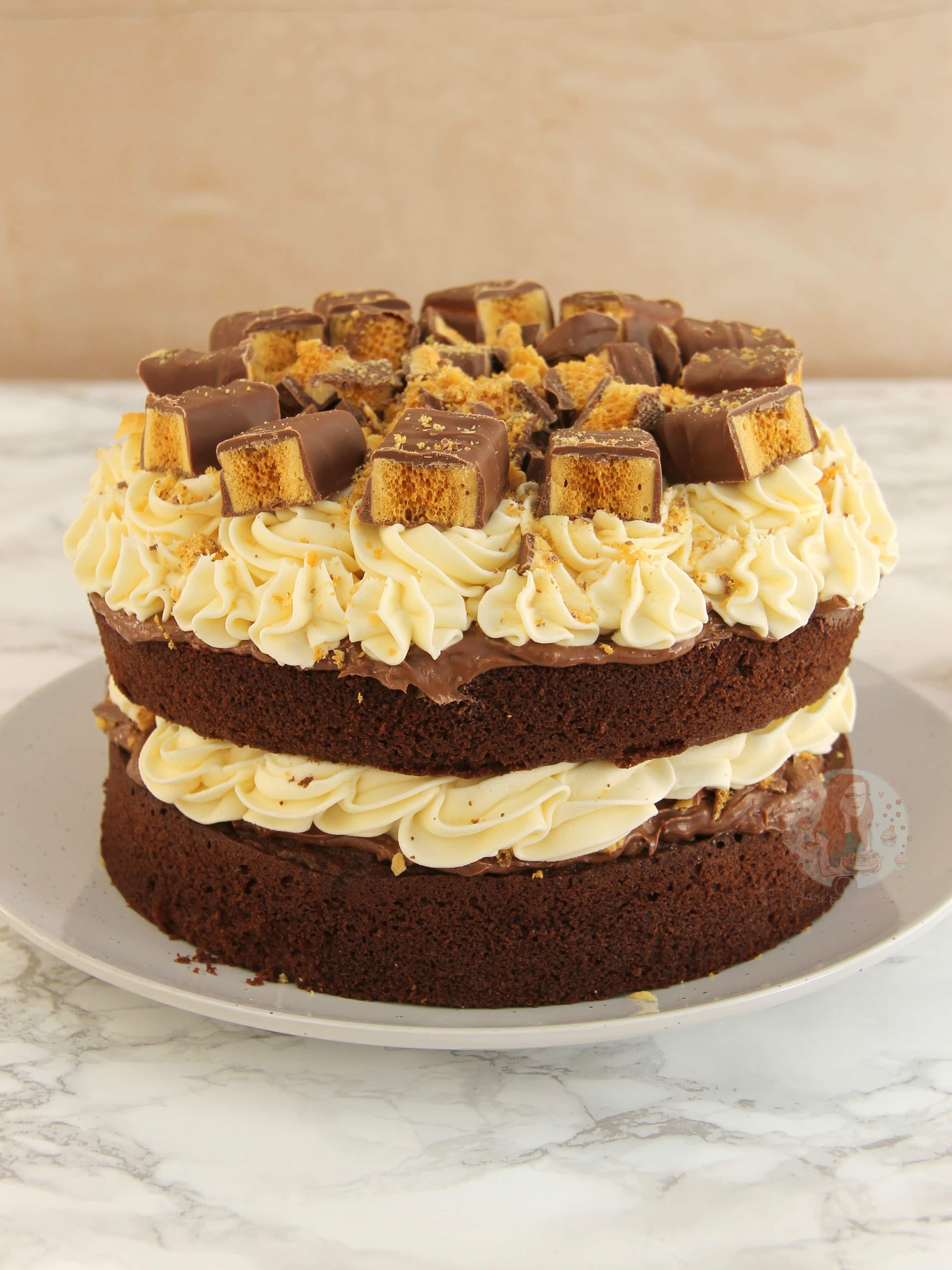 Chocolate Sponge, Crunchie Spread, Honey Buttercream Frosting & Crunchies.. the Perfect Honeycomb Crunchie Cake for all occasions!