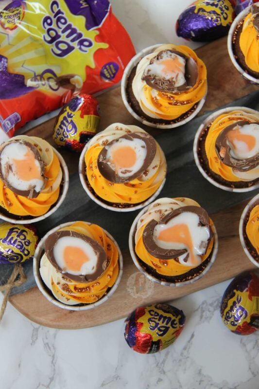 I would say that these are quite an Easter showstopper, and they’re easier to share than a big cake. I have many Creme Egg bakes on my blog now such as my Creme Egg loaf cake, and my Creme Egg layer cake… but cupcakes just get me.