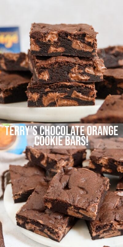 Chewy, gooey, deliciously yummy Terry’s chocolate orange cookie bars. Easy to bake, even easier to eat the entire batch!
