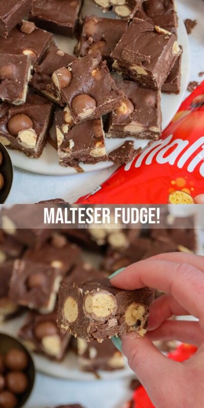 An easy five ingredient no-bake fudge with milk chocolate, dark chocolate and Malteser’s – the perfect malteser fudge!