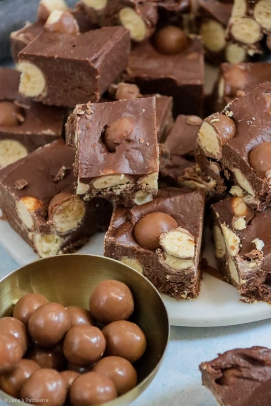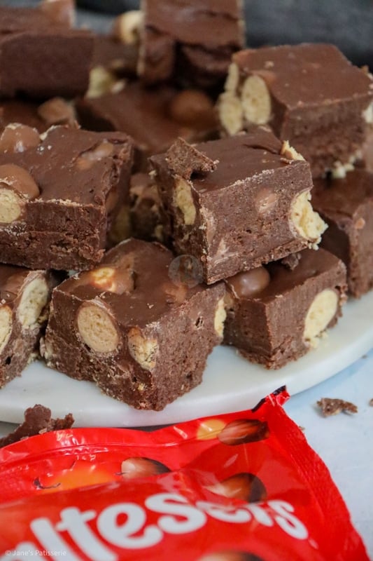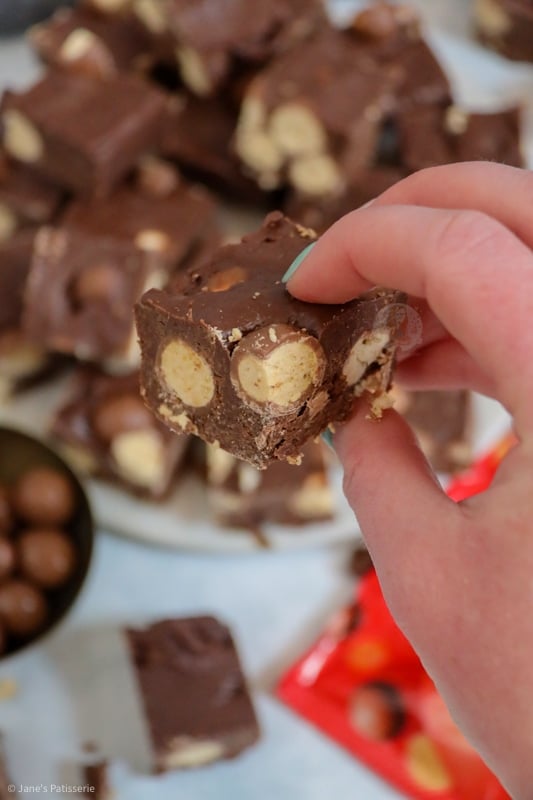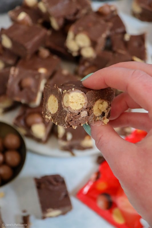 I adore the honeycomb style crunch of the biscuit centre of the malteser, and it works wonderfully with the sweetness and texture of the fudge. Sometimes, the malteser can start to dissolve after a few days but you can’t prevent it.