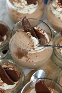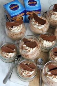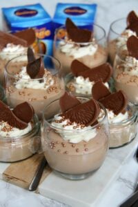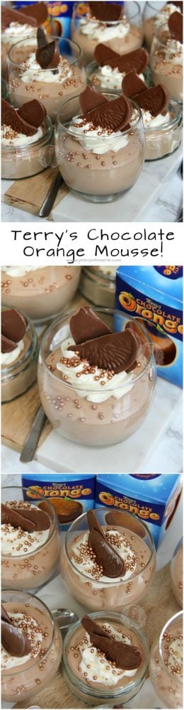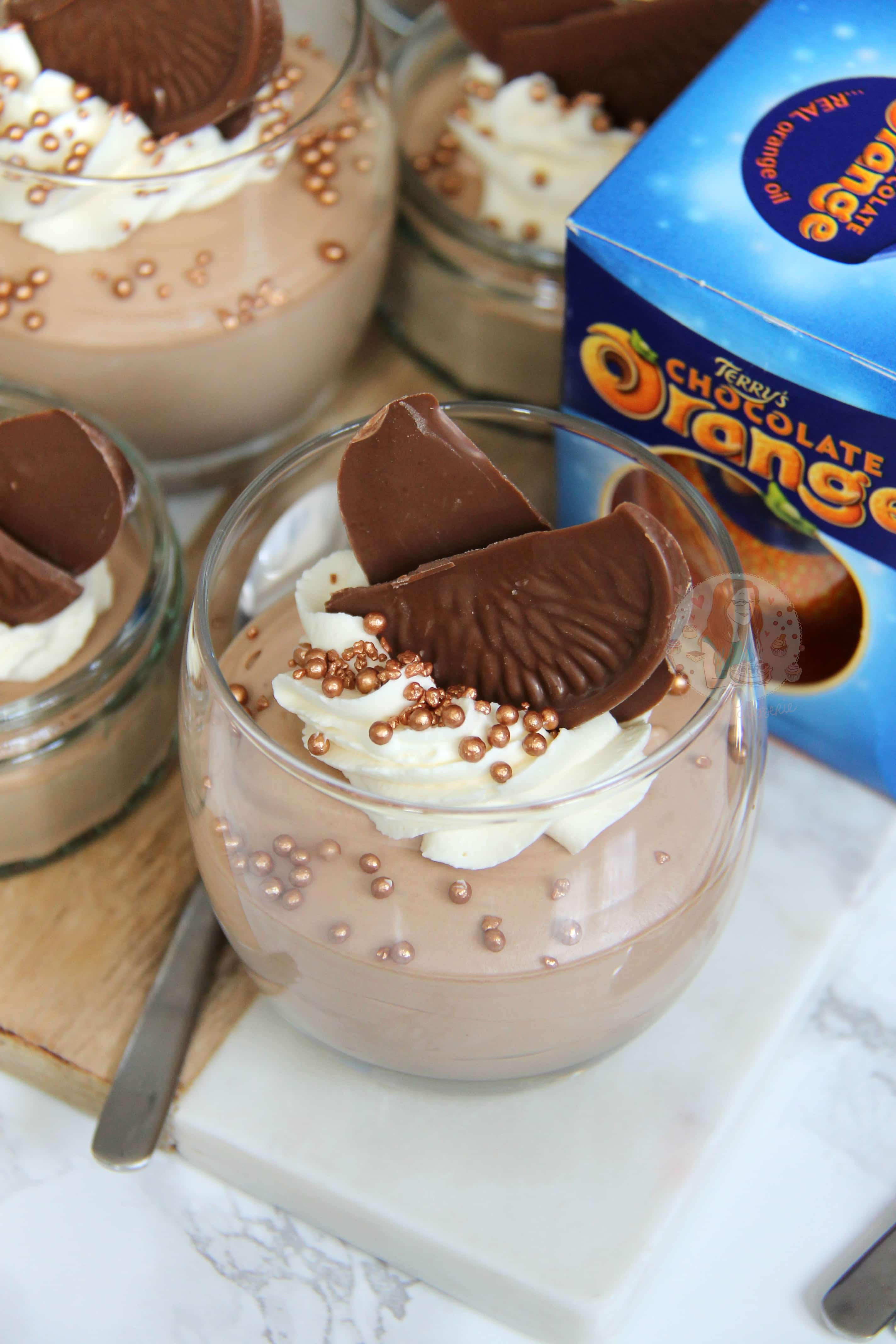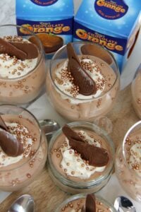 I’ve actually made this into a delicious dessert by using my Terry’s Chocolate Orange Cookie Bars, and topping it with this mousse. It makes like a trifle of sorts, with some whipped cream added on top is ideal. I decided to top these mousses with cream as well because you all know I love it… and it makes it look that little bit better!