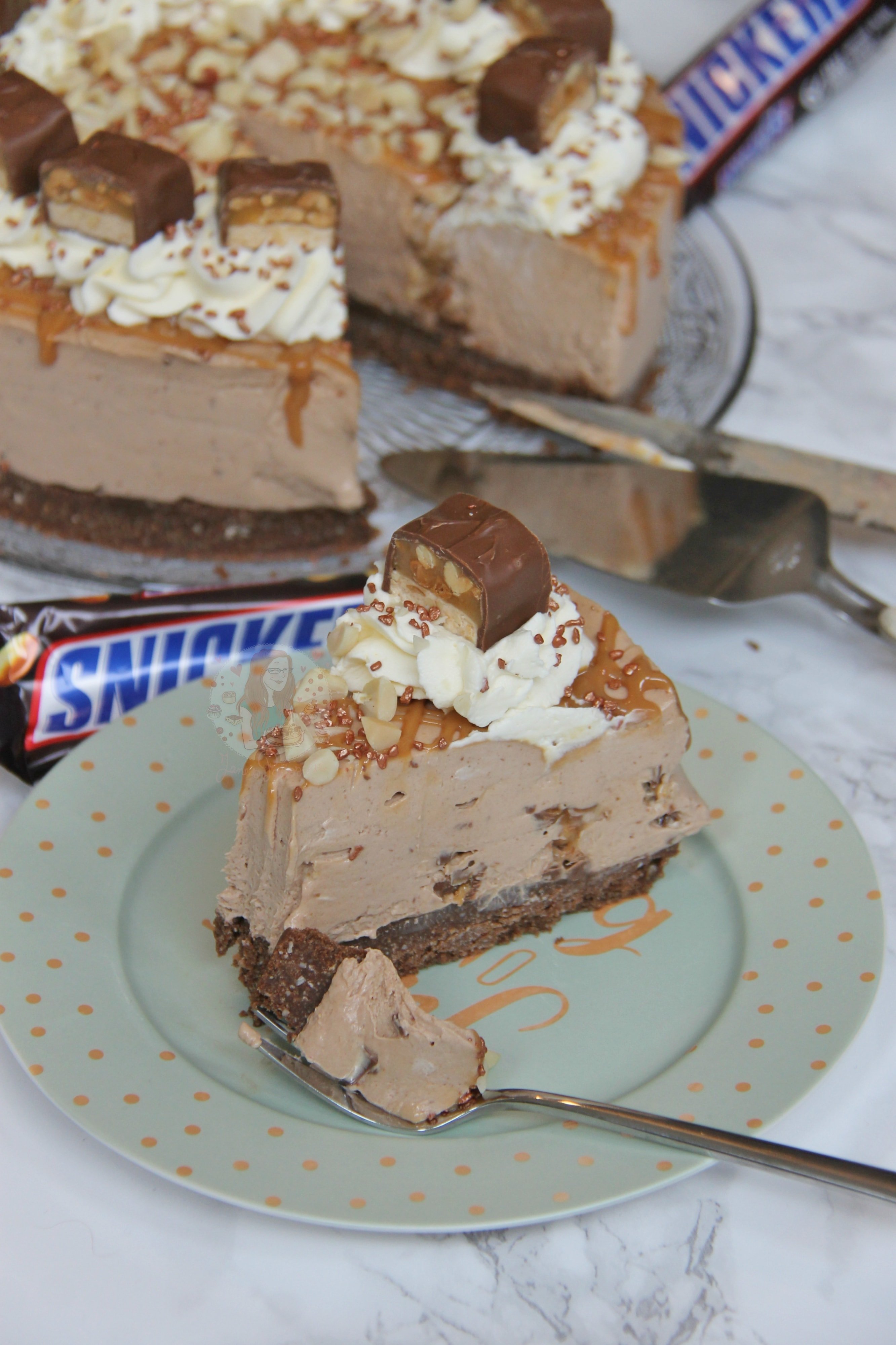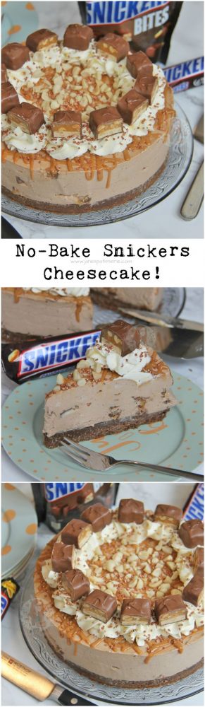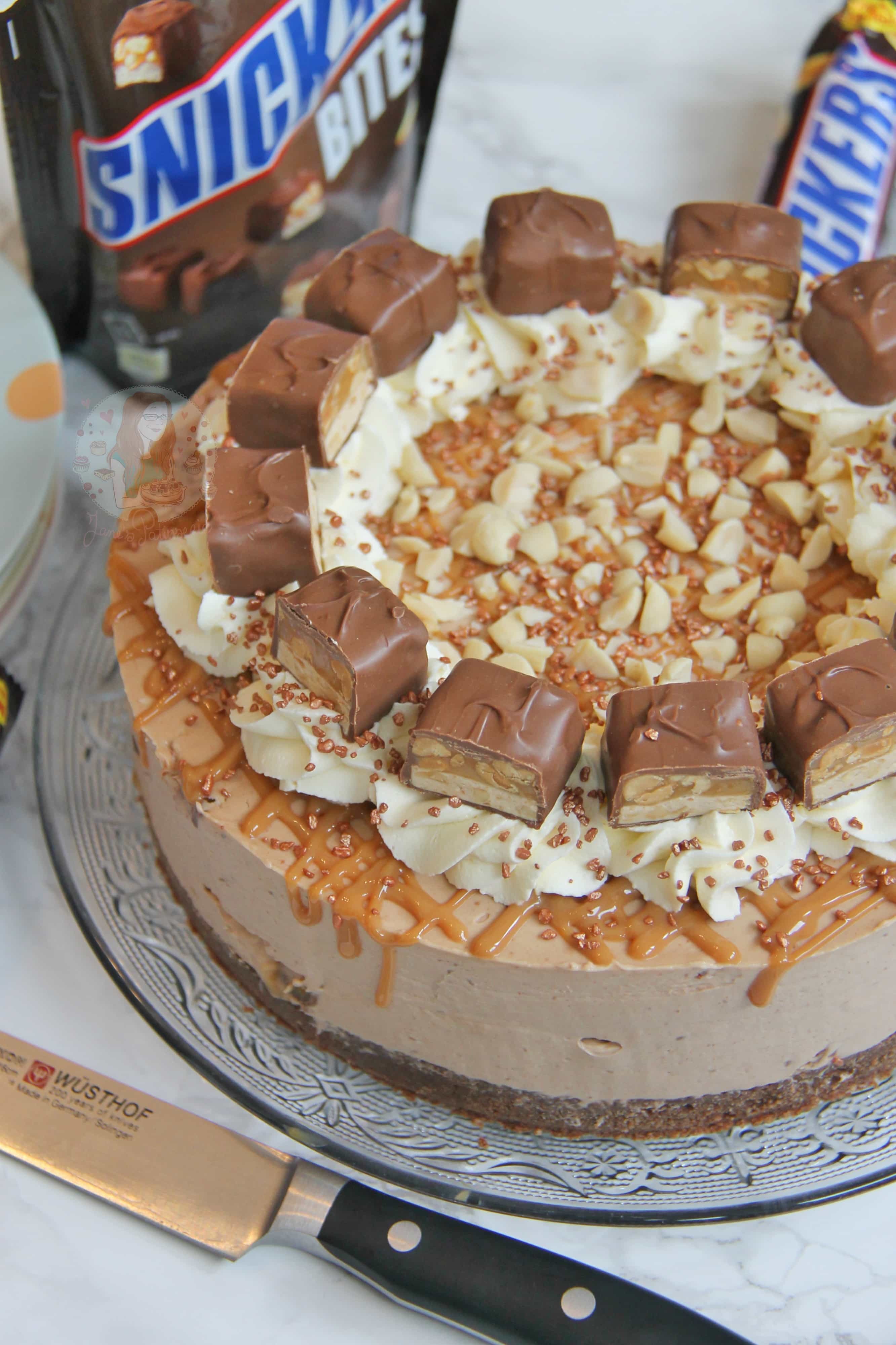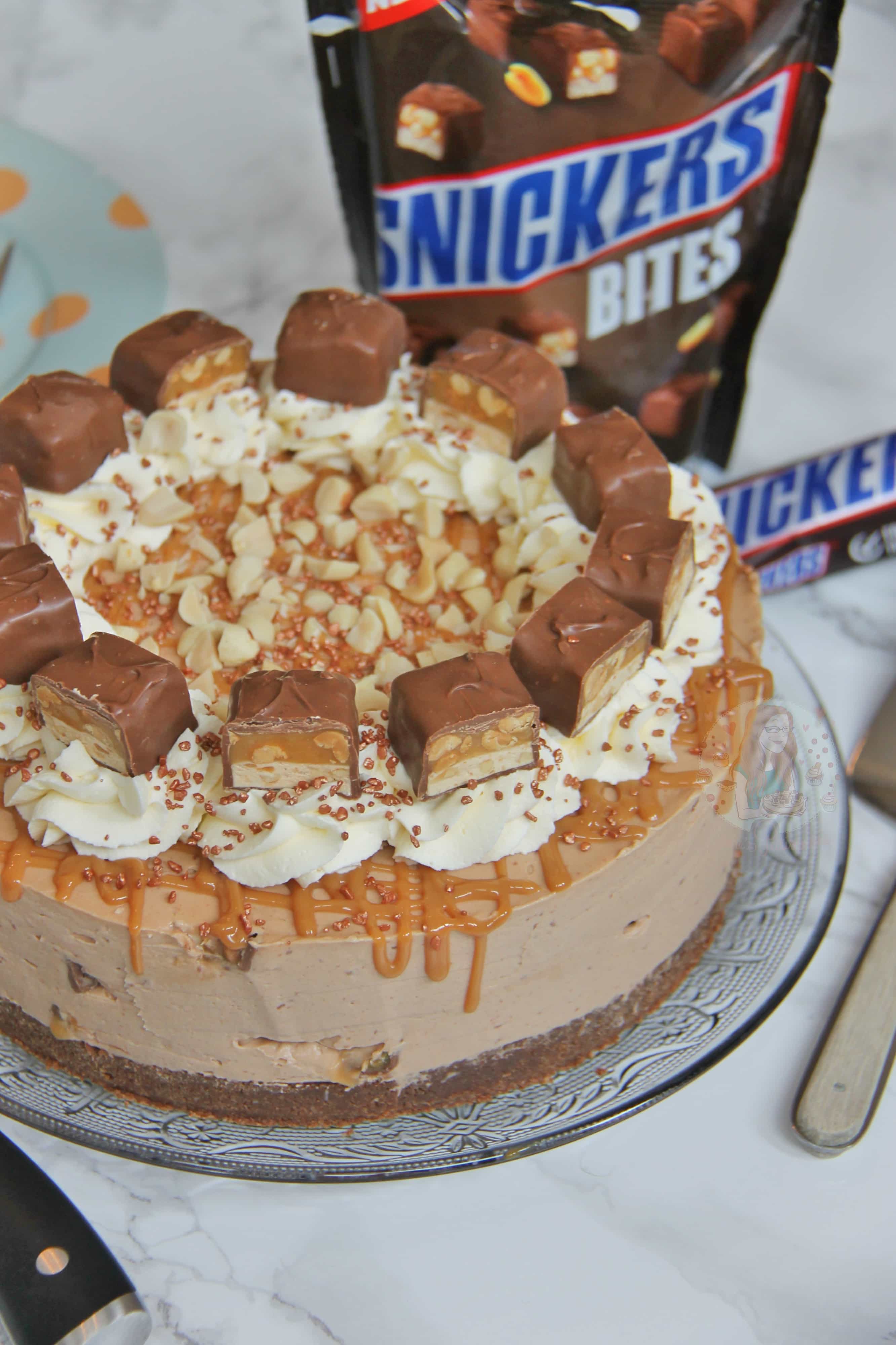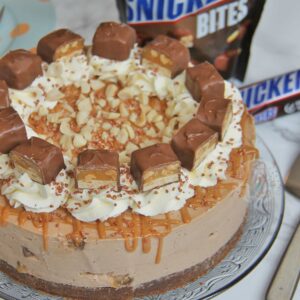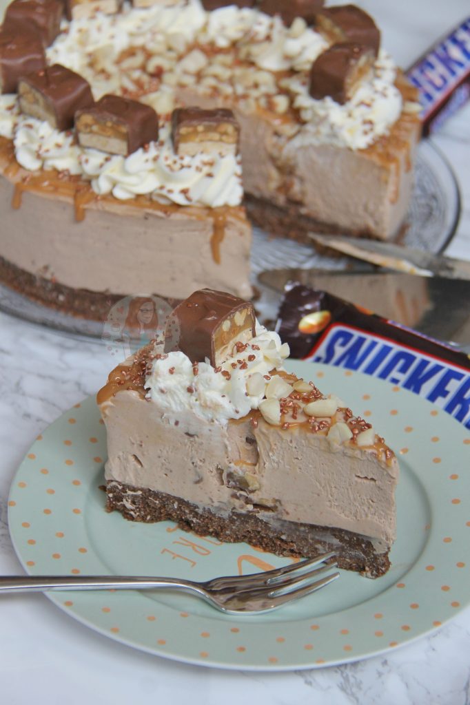 I am a Snickers fan, and especially in this cheesecake. Honestly, they’re the perfect amount of Nougat, Caramel, Chocolate, and Peanut, so mixed with a Biscuit Base, creamy delicious Cheesecake filling, and some delicious yummy topping, what more could you want?! Enjoy! x
