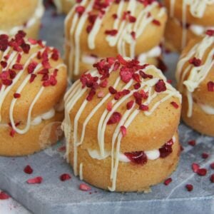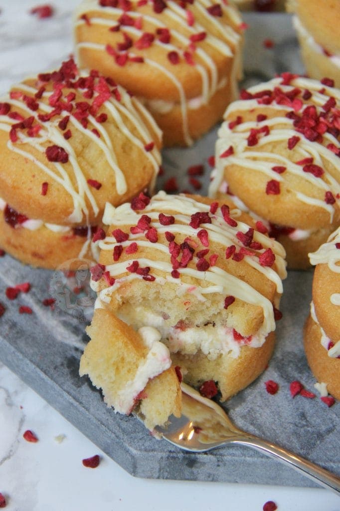Lovely light mini vanilla sponges, vanilla buttercream, jam, and even more delicious making the perfect mini Victoria sponge cakes!