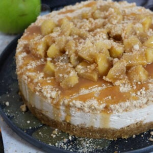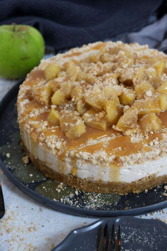 I can’t technically call this a no-bake cheesecake, as you have to cook the apple, and the crumble part of the cheesecake… but the rest is a no-bake style. I have seen many recipes for a baked apple crumble cheesecake, kind of like my apple crumble cake where the apple is just baked with the rest of it.