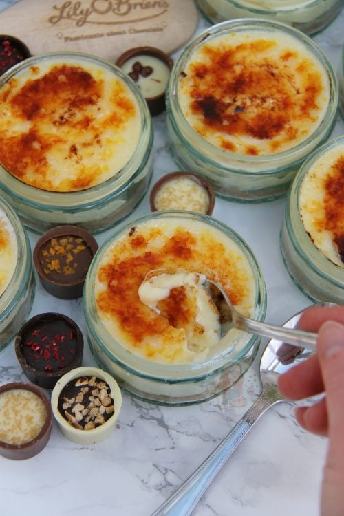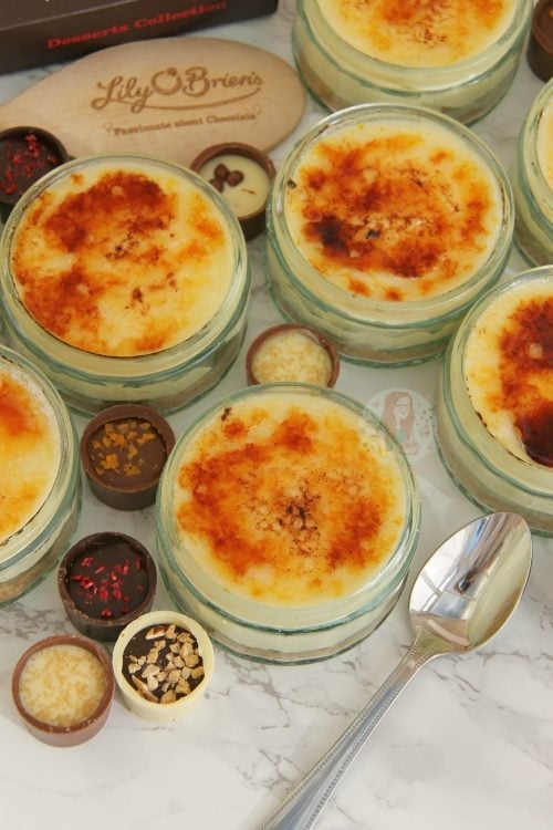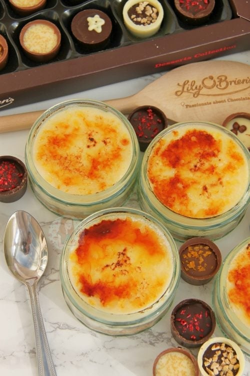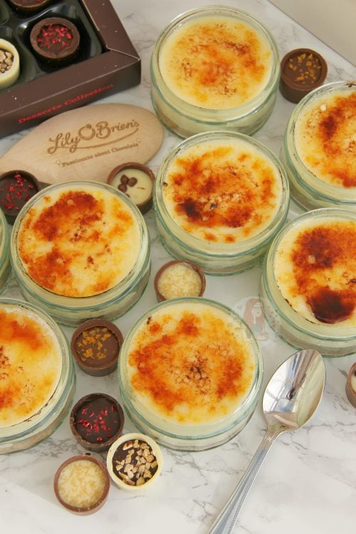 This dessert was inspired by Lily O’Briens dessert collection of chocolates. Honestly, it was a struggle to pic a dessert as I wanted to do them all. They have some delicious chocolates in the collection such as hazelnut torte, passion fruit posset, banoffee pie, creme brulee, raspberry infusion and key limey pie, and they are all DELICIOUS. I’ve got various recipes already on my blog that could be linked to these, however the creme brûlée just jumped out at me as its something I adore.