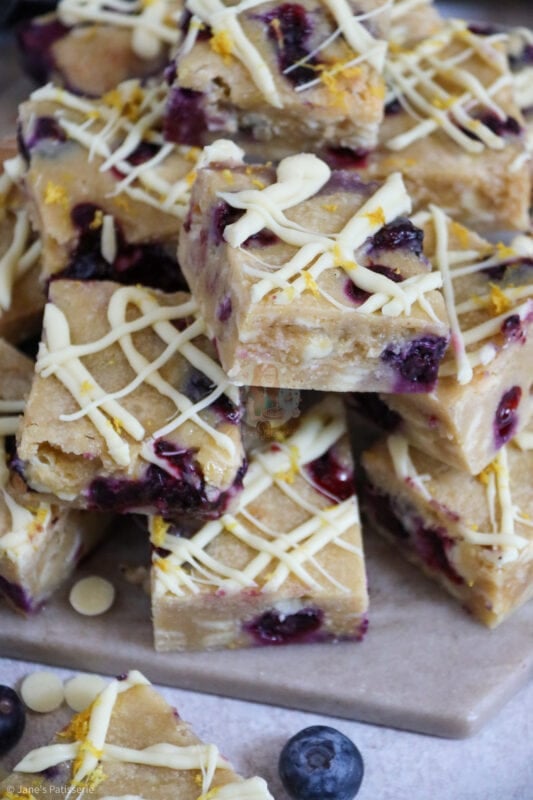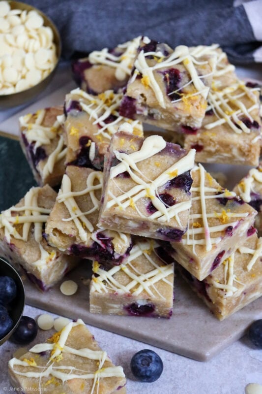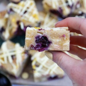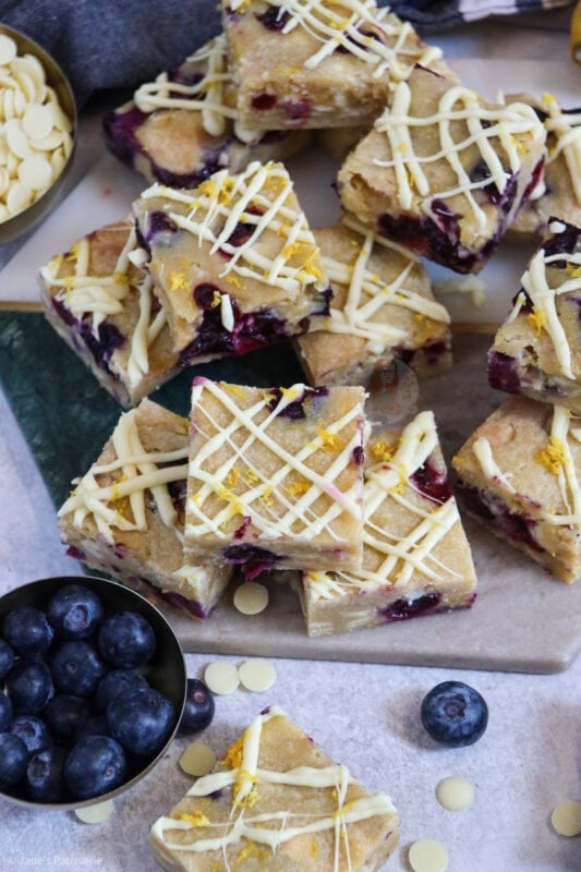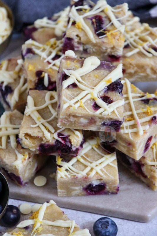 Deliciously sweet, light, lemon & blueberry blondies with white chocolate chunks!